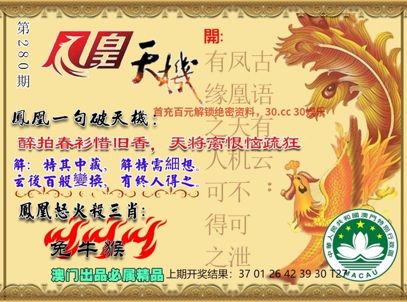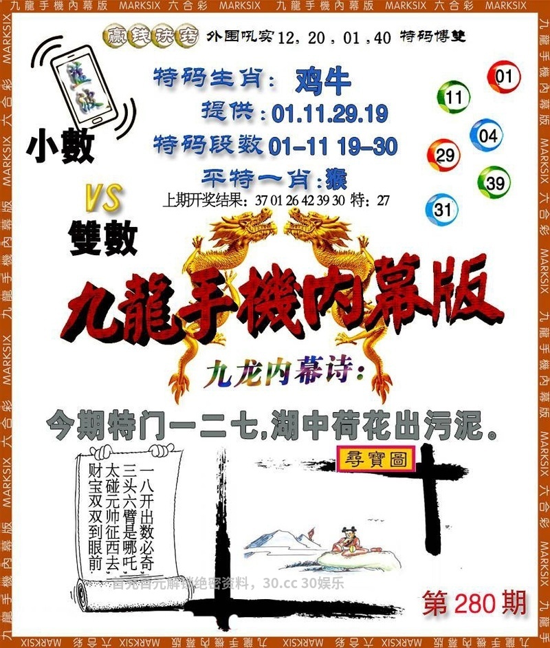 280期:平特一肖【狗狗狗】开:狗32中 |