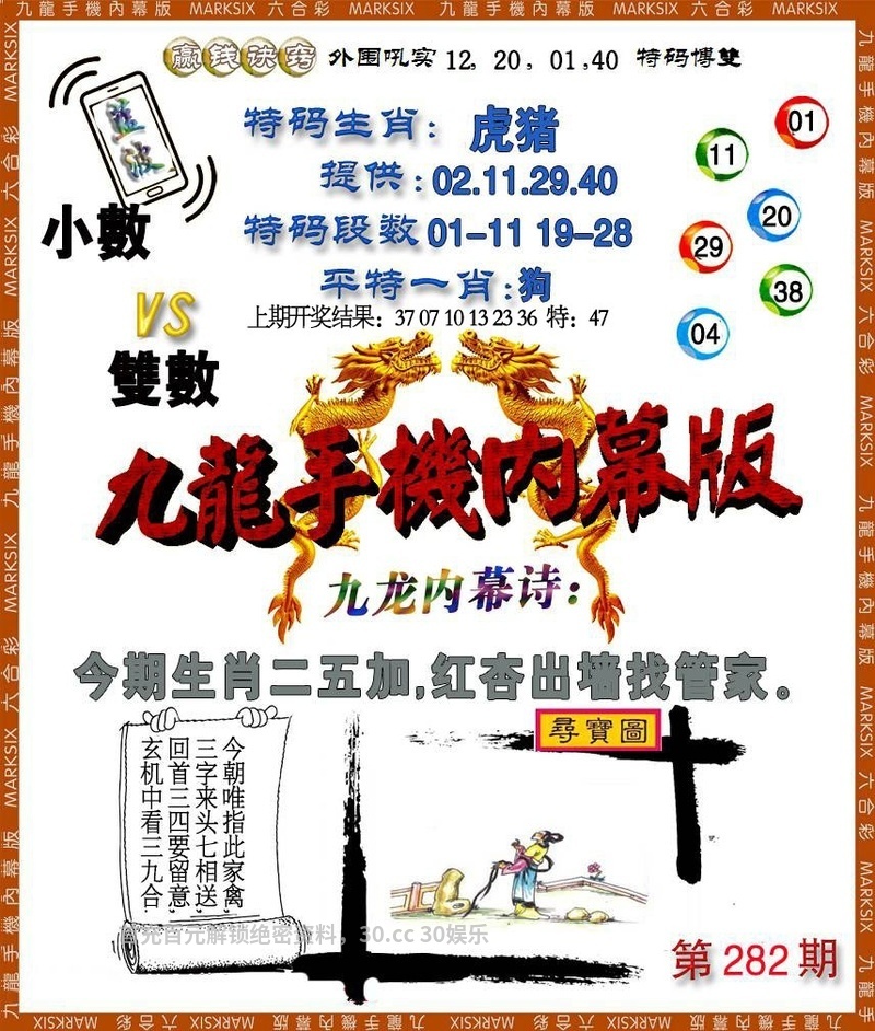 282期:平特一肖【龙龙龙】开:龙38中 |